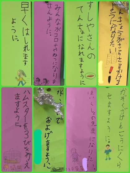 早くマスクを外せる日常が戻ってきますように。子どもたちの願いごとが「〇〇になりたい」「〇〇がほしい」ことであふれますように。