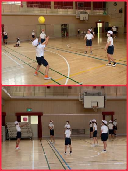 1組は前半は運動場、後半は講堂で、体育の学習に取り組んでいました。