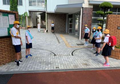 木曜日担当の6年生も今日が1学期最終日。密にならないように6人が少し離れて、下級生たちに朝のあいさつをしてくれました。1学期よくがんばりました!ありがとう!