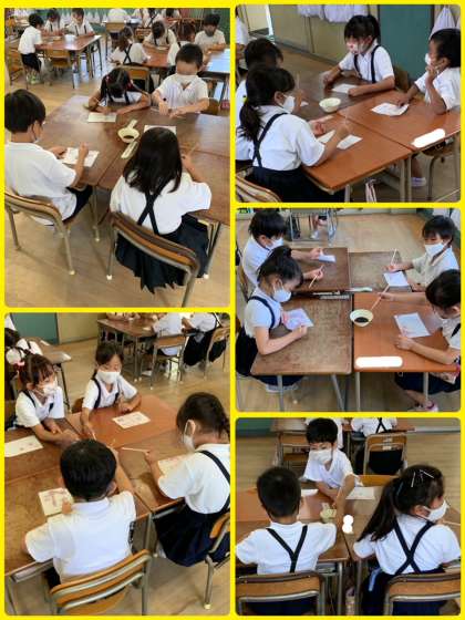 あさがおの花で作った色水でお絵描きをしました。