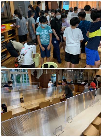 片づけはみんなで。準備や終わったあとのテーブル拭きは食事係のみなさんが。ありがとう。