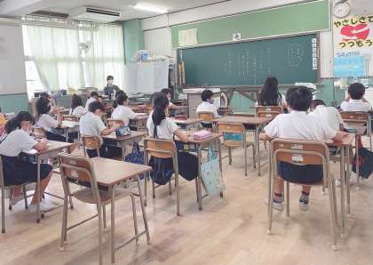 相変わらず新型コロナウイルスは、世界中で広がっています。そして、今までと大きく違うことは、みなさんも感染しやすいデルタ株という種類のウイルスが出てきています。このデルタ株は感染力が強いそうです。1人の人が感染すると、今までのコロナウイルスは多くて3人くらいまで感染していたのに、このデルタ株は9人に感染させる強い力があるそうです。これからどうなってしまうんだろう、と不安な気持ちになってしまいますが、私たちにできることは、感染予防を続けることです。とにかく手を、指の間、指先、爪もしっかり洗いましょう。消毒をしましょう。そのためにもハンカチを3枚持ってきましょう。人と話すときは、特に鼻までマスクをきちんとつけましょう。マスクは、不織布のマスクがやはりうつりにくく、うつしにくくするようです。不織布のマスクをなるべくつけましょう。汗で濡れたり汚れたりすることもあるのでマスクももう1枚必ず持ってきておきましょう。それから、人とくっつきすぎないようにしましょう。何よりも大事なことは、しんどいとき、いつもと体のようすがちがうときは学校に来ないことです。そのためにもゲームばかりしない、ケータイばかり触らない、テレビばかり見ないで、早寝早起き、よく食べる、という規則正しい生活を毎日しましょう。