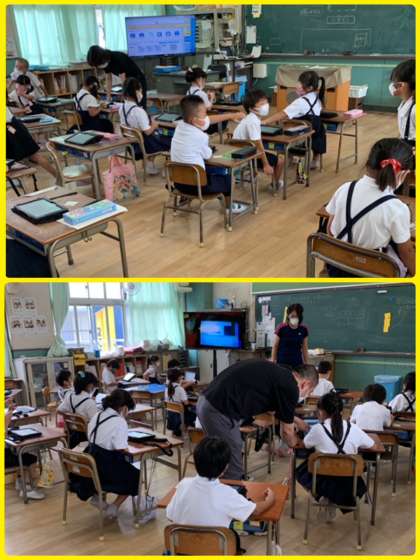 「自分でログインしたの?」と聞くと、「うん!」という返事が。「こうちょうせんせい、ぼくもできたで」「わたしも!」…、自信満々の返事が次々と返ってきました!すごいなぁ!