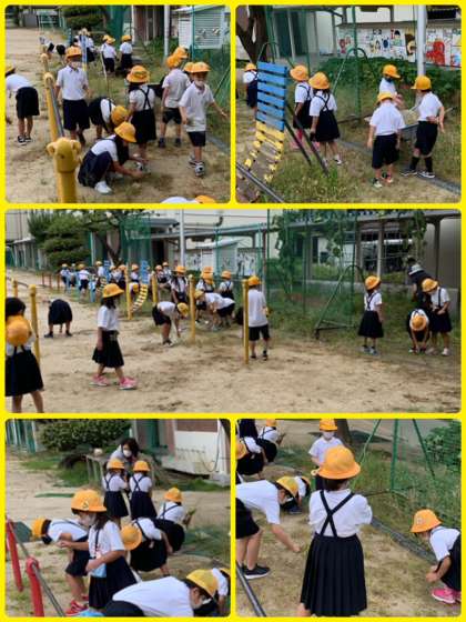 今日は1年生が草ぬきに。「うんとこしょ、どっこいしょ」、なにかのお話のようなかけ声も聞こえてきました。なんでも楽しみながら、一生懸命にがんばってくれる1年生。