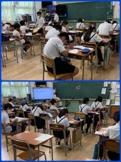 今日は大阪市に大雨警報も出るほど不安定なお天気。そんな中でも、子どもたちは自分のもっている力を出して、学習に取り組んでいました。すばらしい!