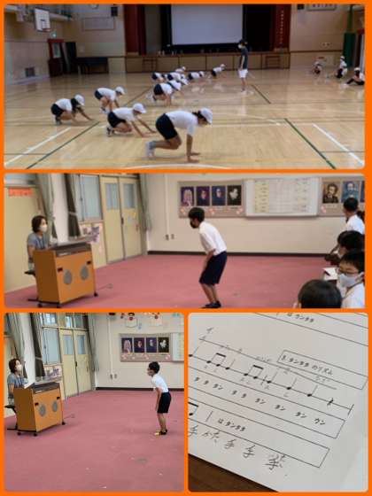4年2組の音楽は、一人一人が自分で考えた「リズム打ち」にチャレンジ!全身を使って表現していました!表現の方法っていろいろあるんですね。楽しい!