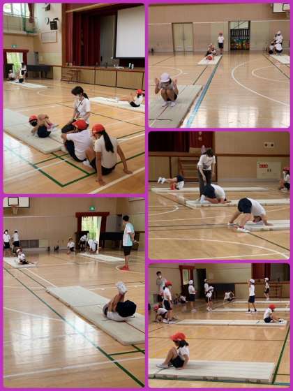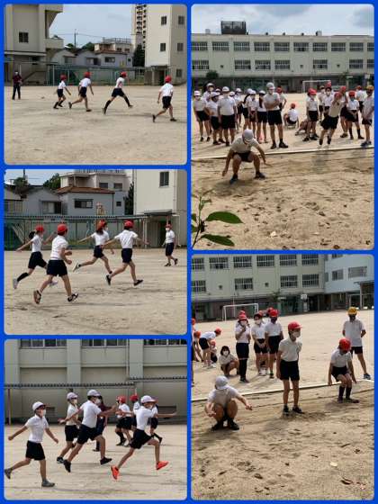 今日は、少し雲がかかっていて運動場での体育の学習にはちょうどよいコンディション。3年生、4年生、6年生のみなさんがしっかりと体を動かして取り組んでいました。