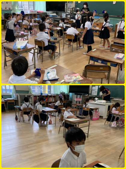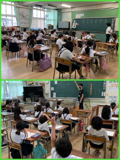 1年生の算数「なんじなんじはん」の学習。「時計を12時にしてみよう」という先生の問いかけに、「できたー」「みてー」と先生に時計を見せる子どもたちです。最近は時間もスマホで見たり、デジタル時計も多いですが、またご家庭でも時計の読み方の復習をお願いします。