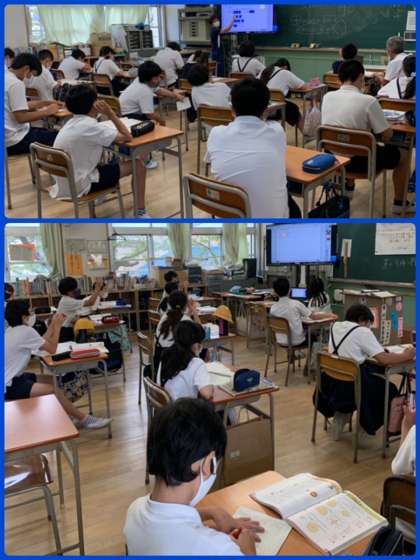 5年生の算数、今回の単元は2クラスをさらに4つに分けて取り組んでいます。今日は「2と3と4の公倍数を小さい方から3つ求めましょう」の問題をもとに、3つの数の公倍数のみつけかたを考えていました。先生との距離も近く、自分の考えたことを積極的に伝えていました。これからもまちがいを恐れず、どんどんチャレンジしていきましょう!がんばれ、5年生!