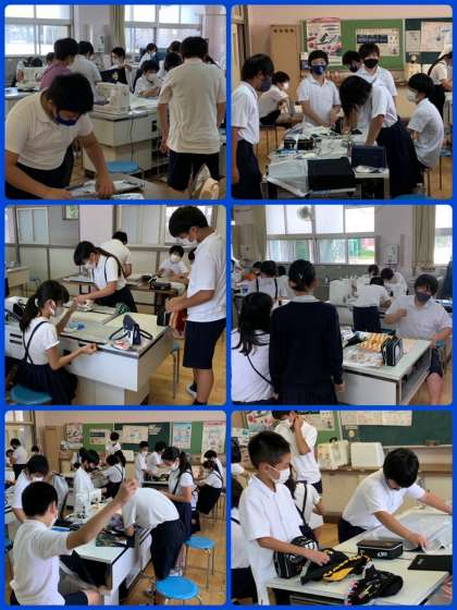 6年生家庭科エプロン作りは、いよいよミシンへ。