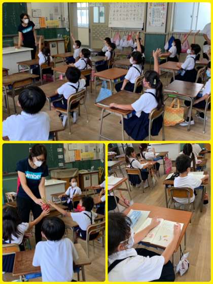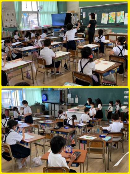 「食べたらどんな音がするかな」「さわったらどんなようすかな」先生の問いかけに自分なりの答えを考えて発表していました。「つるつる」「ぽりぽり」「しゃきしゃき」「あつあつ」「ほこほこ」「くるんくるん」…、そこから連想する食べものを考えてワークシートにも書いていました。「考えることが大事だよ」という先生の声かけにどんどんチャレンジする1年生でした。このままどんどん成長していってほしいです。よくがんばりました!