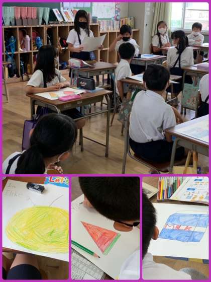 外国語活動で、自己紹介にチャレンジしていました。I like 〜.I don't like〜. 絵にも表しながら取り組んでいました。おうちの人にも、どんな自己紹介をしたか教えてあげてね。