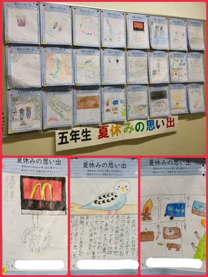 個人懇談会でも見ていただいたかもしれませんが、9月の掲示板です。教室の掲示もステキな作品ばかりです。よくがんばりましたね。