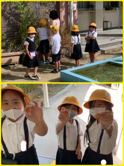 「こうちょうせんせえ〜、ふうせんかずら」と種の袋を見せてくれました。一人ひとつとれたようです。しっかりと観察してくださいね。