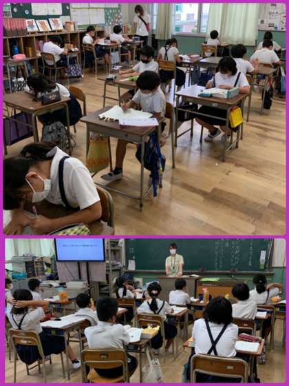 ↓ 1組は漢字テスト、力が発揮できたかな?