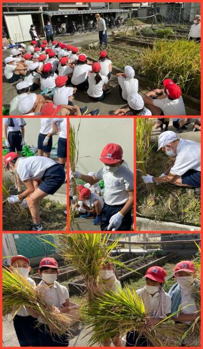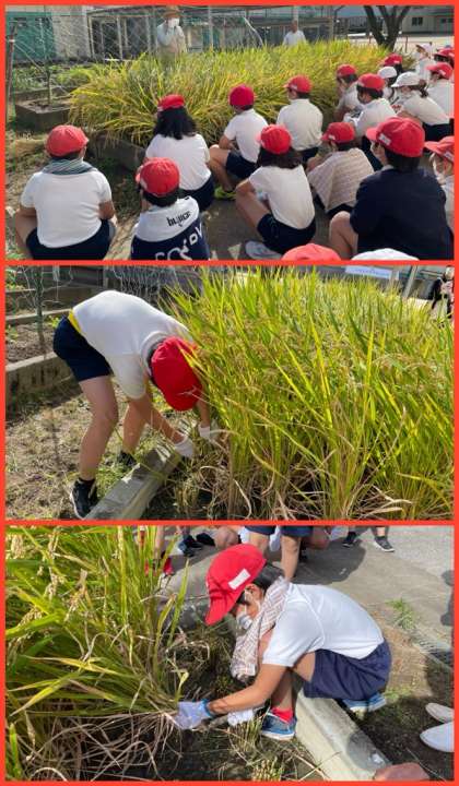 11月末の調理実習では、このお米を使ってご飯を炊き、味噌汁を作ります。学校での給食も家庭での食事も、育てている人への感謝を忘れず、残さずいただきましょう。