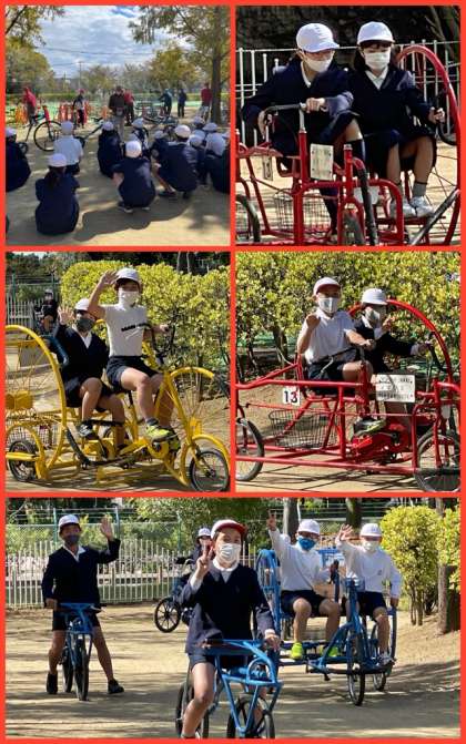 1組は自転車博物館で昔の自転車の展示を見た後、昔の自転車の試乗をさせてもらいました。
