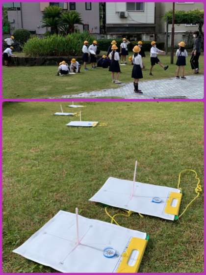 かげと太陽の向きを調べていました。結果はどうだったかな?