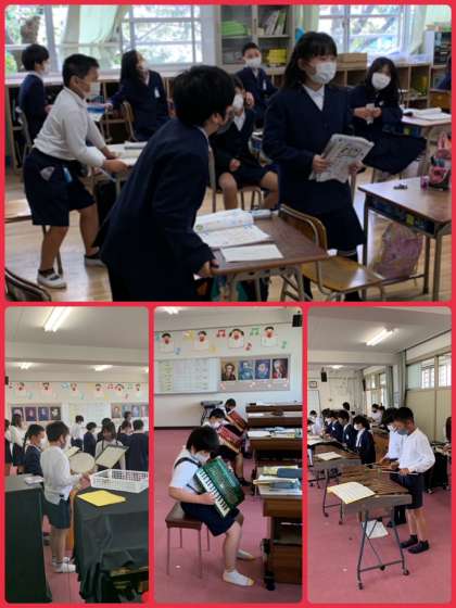 外国語に音楽の合奏、今日も楽しく学ぶ5年生のみなさんです。