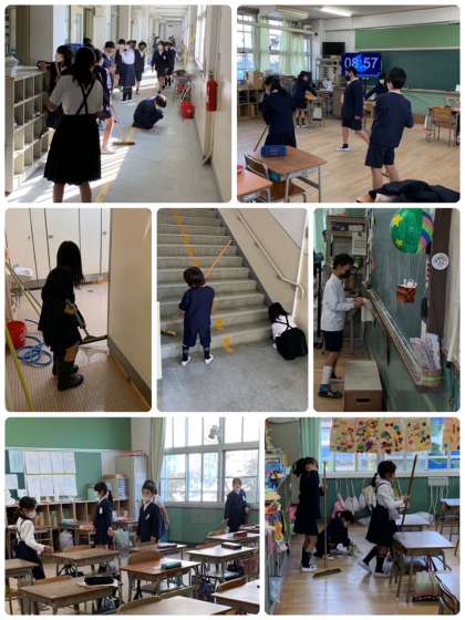 おかげで、きょうも がっこうは きれいになりました。みなさんが いっしょうけんめいに そうじをするすがたをみて こうちょうせんせいのこころも きれいになったきがします。いつもありがとう!