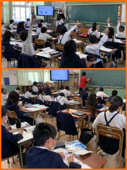 5年生の体育はバスケットボールの学習に取り組んでいました。休み時間にも3on3やシュート練習をよくしているだけあって、白熱した試合をしていました。ゲームはチームプレイが大事です。作戦を立ててどんどん練習していこう。