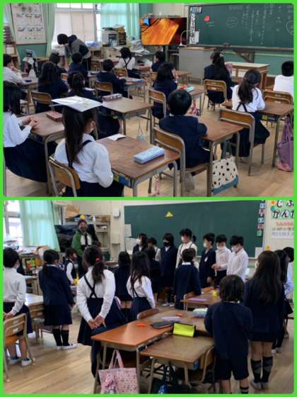 2年2組のみなさんが、4年生のお兄さんお姉さんからつるの折り方を教えてもらっていました。異学年の交流もどんどん進めていきたいです。