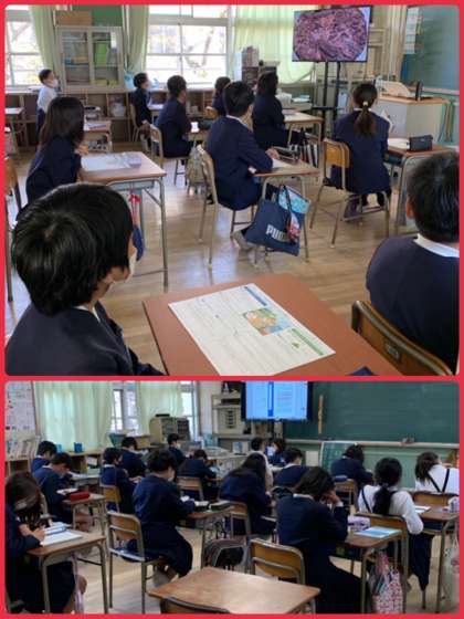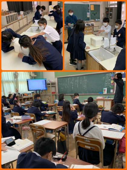 4年生理科は「ものの温度と体積」の学習。1組が理科室で実験をしていました。結果はどうだったかな。