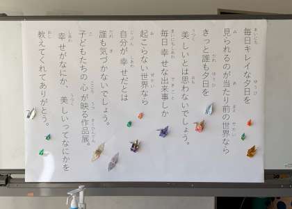 本日より作品展が始まりました。本日もたくさんの保護者の方に来ていただき、うれしく思います。