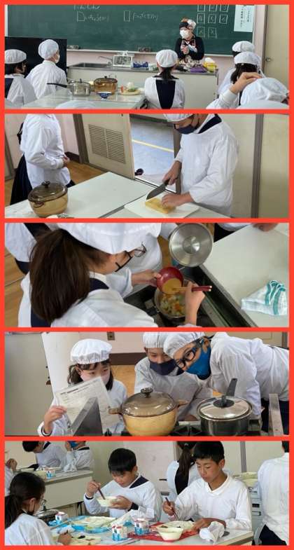 待ちに待った調理実習を行いました。木曜日に1組、金曜日に2組が実施しました。