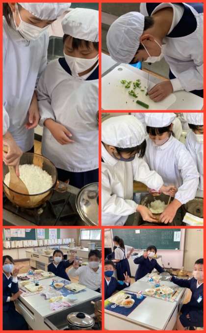 メニューはご飯とみそ汁です。初めて包丁を握る子、おうちでよく料理をしている子、いろいろでしたがどの班も協力して完成させられました。