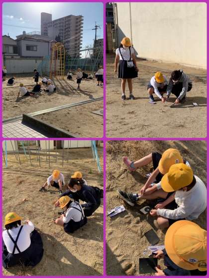 1組の理科「日光を集めたとき」の学習で、黒紙に虫メガネを持って運動場に出てきました。天気に左右される学習です。今日は、太陽が出ていてよかった!あちこちでケムリが上がっていました。