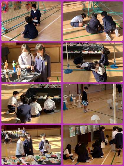 作品展鑑賞も各学年行いました。自分の作品はもちろん、友だちの作品、ちがう学年の作品、しっかり見ながら感想を言い合っていました。うれしいです。
