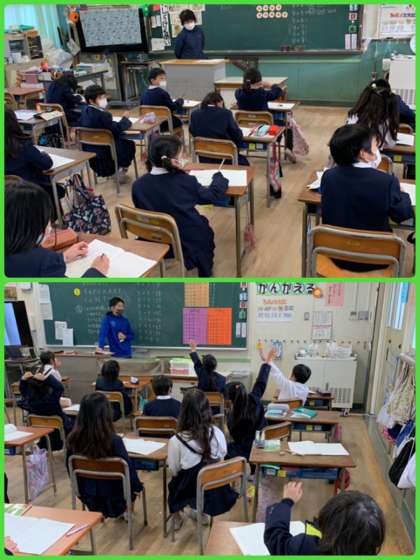 2年生、3年生どちらも算数の学習に取り組んでいました。