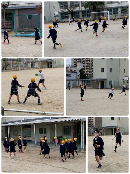 1時間目から使えるようになった運動場。冷たい風も何のその。昨日の分も、全力で遊ぶ子どもたちです。