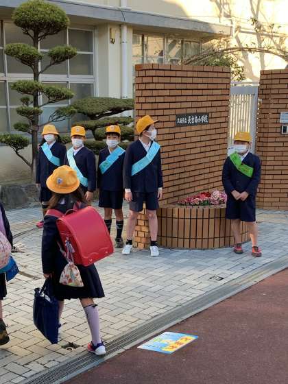 あいさつの他にも、「前のボタン留めてね」と身なりにも気をつけるように声をかけてくれていました。さすがです。すばらしい!
