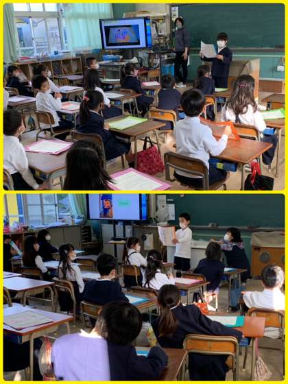 1年生はあさっての学習参観に向けて、発表のリハーサルをしていました。今日は1組の人は2組のみなさんに、2組の人は1組のみなさんに発表を聞いてもらっていました。ドキドキしたと思いますが、きっといい練習になったことだと思います。がんばろうね。