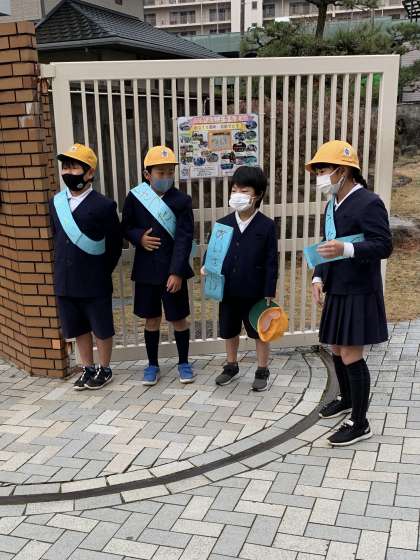 今日もみな小あいさつ隊は3年1組。4名のみなさんが来てくれました。大きめのたすきに戸惑いながらも目を見てあいさつできました。おかげで今日もいい一日になりそうです。ありがとう!
