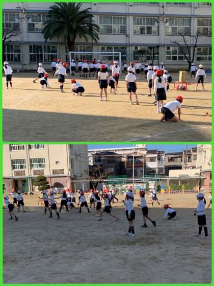 今日も元気な1年生と2年生。体育も全力でがんばりました!