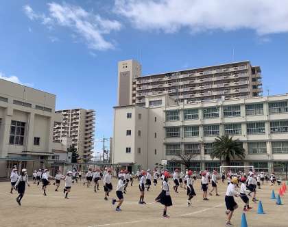 今日は1・3・5年生。明日は2・4・6年生。感染症対策をしながら隔日で取り組んでいきます。