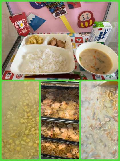 写真は出来上がりのときです。1月はおせち料理が順番に出てきています。今日はくりきんとん。あまくてとてもおいしかったです。