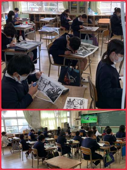 こつこつと彫刻刀で木版画に取り組んできた5年生。ステキな作品が完成してきたようです。掲示を楽しみにしておきます。