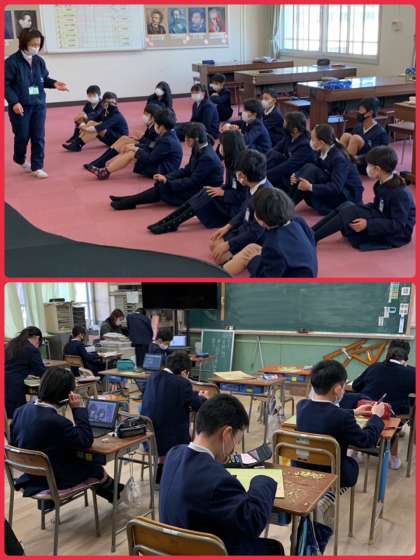6年生は卒業制作の「テープカッター」作りに取り組んでいます。安全に気をつけながら電動糸のこを使って板を切っていました。どんなデザインのものができあがるか、楽しみです。