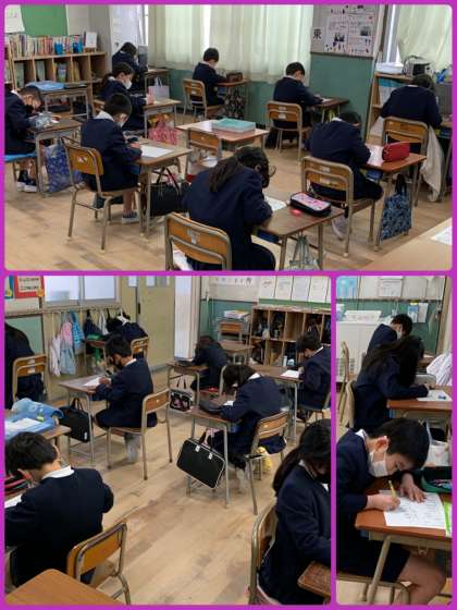 しかし!できた人から採点していくと、満点!満点!満点!!すばらしい結果でした。字も本当にていねいになってきています。1年間、こつこつと取り組んできた成果です。このまま最後まで努力を続けてくださいね。よくがんばりました!