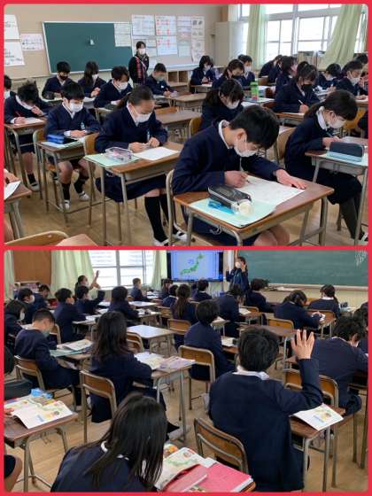 5年生は、来年度に向けて1学級で学習をしてもらいました。31名で写真のような感じに。3年前ならこれが当たり前の光景でしたが、20名前後の学級にすっかり慣れてしまったこともあり、相当圧迫感があります。そして、なにより密になり、活動がさらに制限されます。子どもたちも教職員も快適に学習ができるように、再度熟考します。