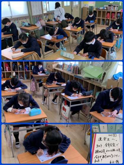 6年2組の子どもたちが小学校生活最後となる『漢字王』にチャレンジしました。結果は、、、全員満点!とまではいきませんでしたが、一人一人が努力をしてきたことがよくわかりました。よくがんばってきましたね。そして字もていねいに書けていました。さすがです!