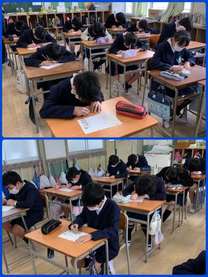 6年1組の子どもたちが小学校生活最後となる『漢字王』にチャレンジしました。問題数も20問!ラスト漢字王にふさわしいテストです。