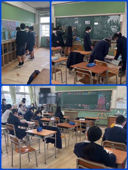 6年生が下校したあと、5年生と教職員が卒業式の準備をしました。