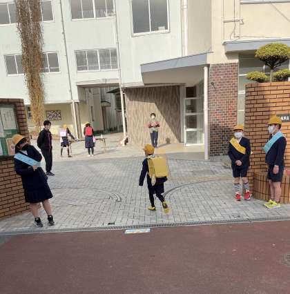 水曜日のあいさつ隊も今日がラストデーとなりました。半年間、学級代表としてよくがんばってくれました。ありがとう。