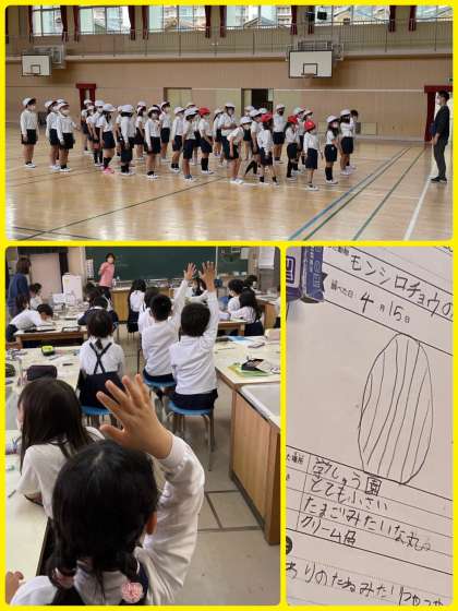 3年生は学年合同での理科の学習。4年生も各クラス理科の学習に取り組んでいました。その季節でないと学習できない単元が多い理科の学習です。春の自然の中、しっかり学習してくださいね。