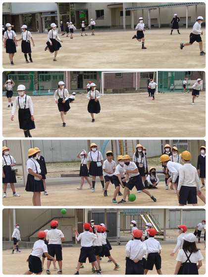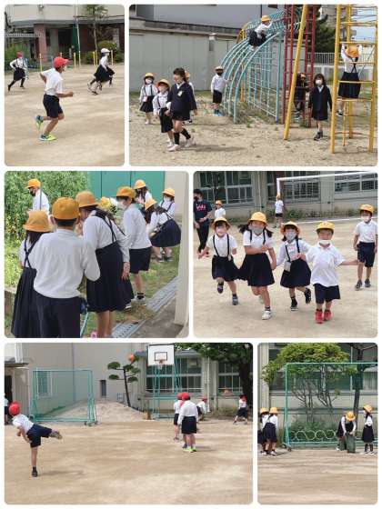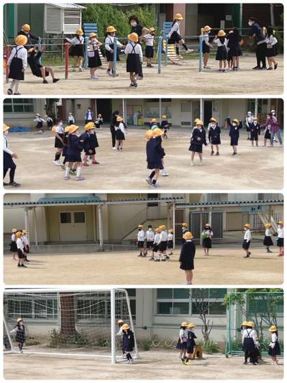 今日から1年生も運動場に出て、外遊びが始まりました。ニコニコ笑顔の1年生です。さっそく、「こうちょうせんせい、みて〜」と鉄棒でいろいろな技を見せてくれました。すごい!